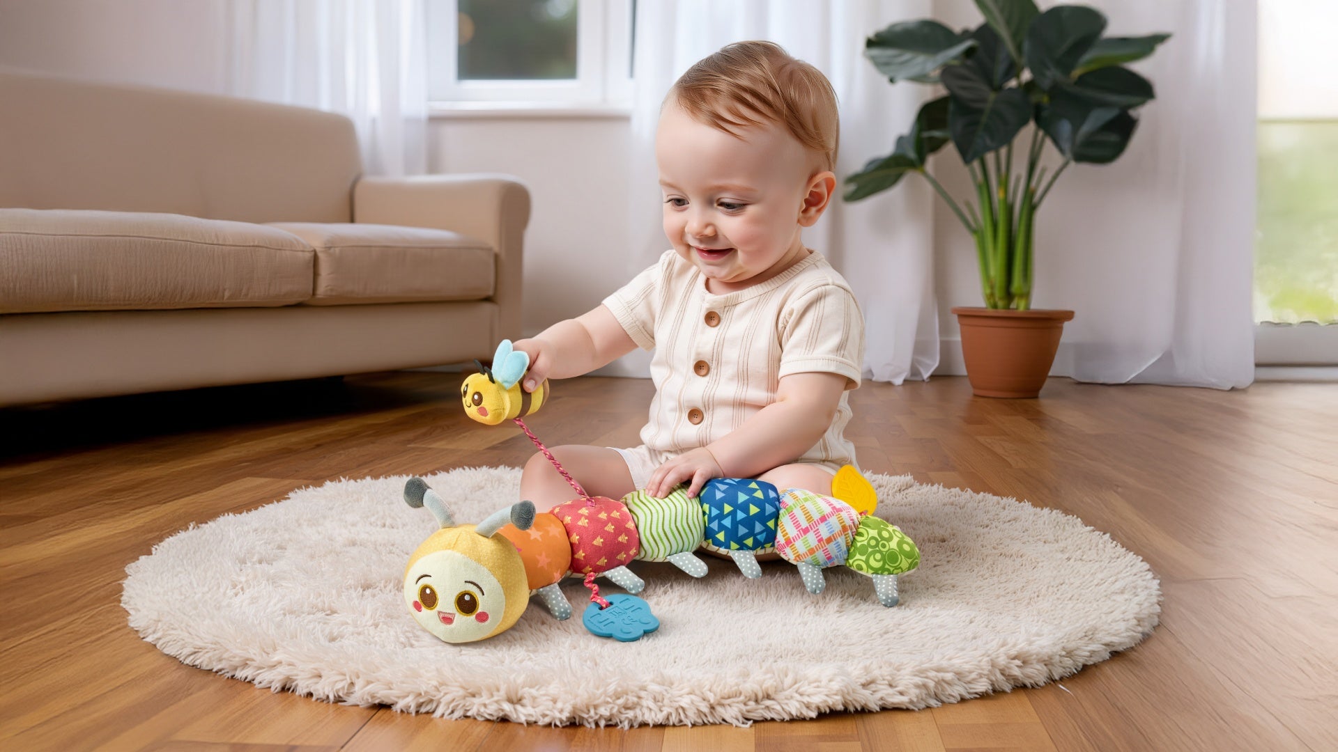 【Pull-Along Bee for Buzzing Vibration Fun】Gently pull the cute bee to activate soothing vibrations, surprising and delighting your baby. This engaging feature helps encourage cause-and-effect learning and enhances cognitive development during playtime.